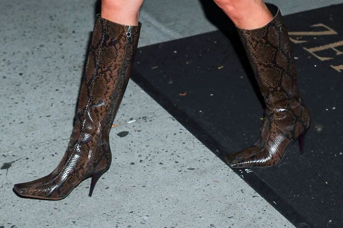 Taylor Swift gave her stamp of approval to an ultra-trendy footwear aesthetic, snakeskin, when out and about with her friend Gigi Hadid in New York City on Monday. She took on the look with an animal-friendly vegan set of boots from Stella McCartney.